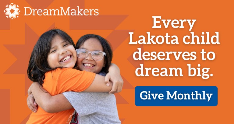 The DreamMakers are a special group of friends who give automatic monthly gifts to ensure the Lakota (Sioux) children are provided for year-round. For as little as 32 cents a day, 100% of your monthly contribution will go directly to helping meet our students’ immediate needs … and will help provide dreams for the future.