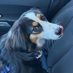 I’m Ruby, a brown-eyed mini Australian shepherd with a flair for attention, a love for food, fellow furry friends and shadowing my humans wherever they go — except if they take the stairs. While my vet calls me “round,” I proudly prefer “fluffy” and insist post-grooming slimness is simply an optical illusion!